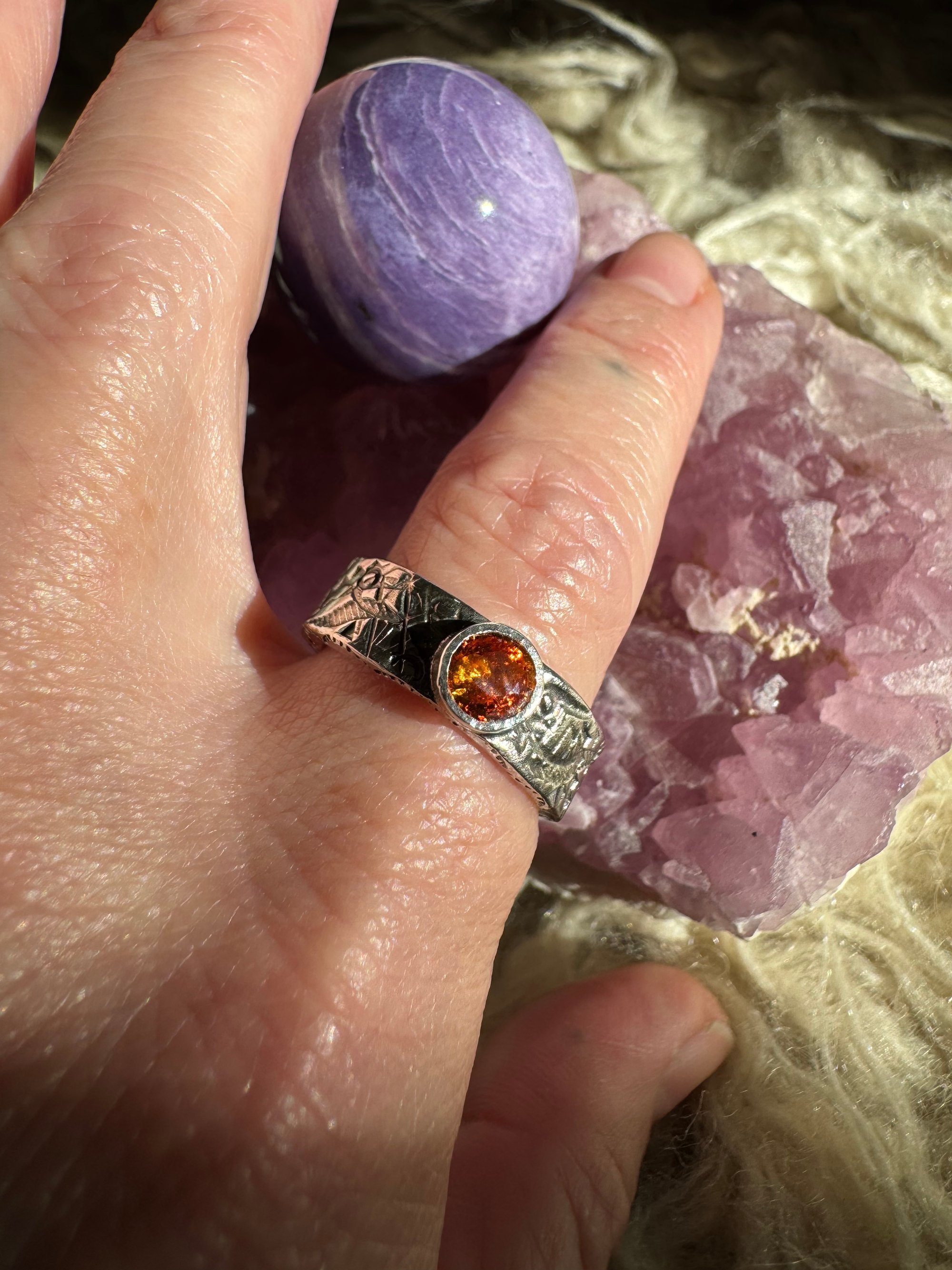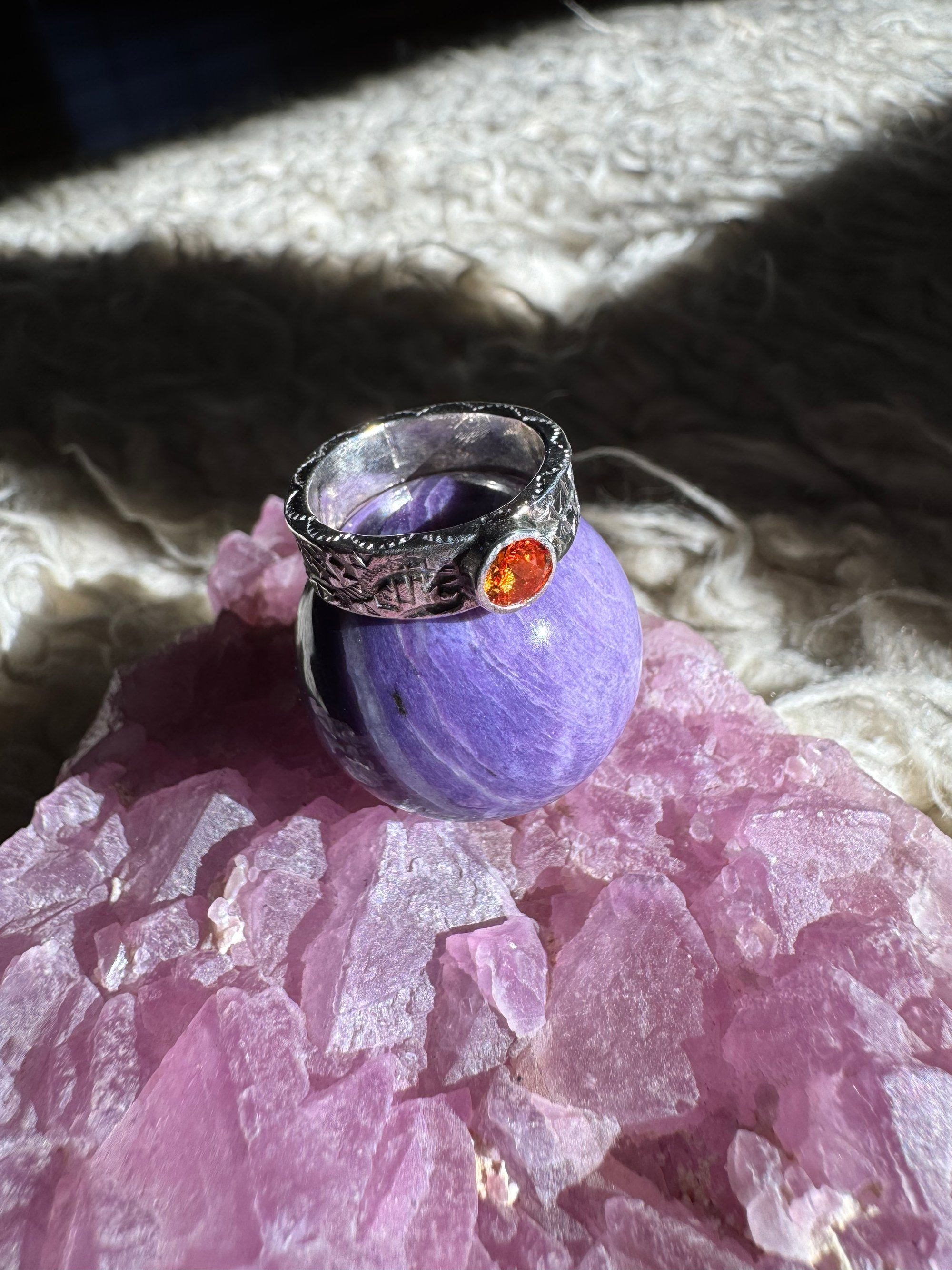 Sterling silver and sapphire. Size 7. I wanted these rings to be organic and eclectic embodiments of warmth and little fires.
