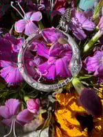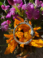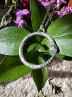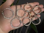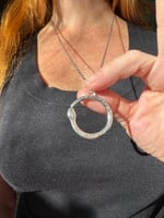 Hand fabricated, one of a kind, sterling and argentium silver. These are perfect for fidgeting as they glide across a 28” infinity chain. Each is made by hand with slight variations, measuring approximately 1 1/8” in diameter. I’ll choose one at random.