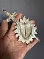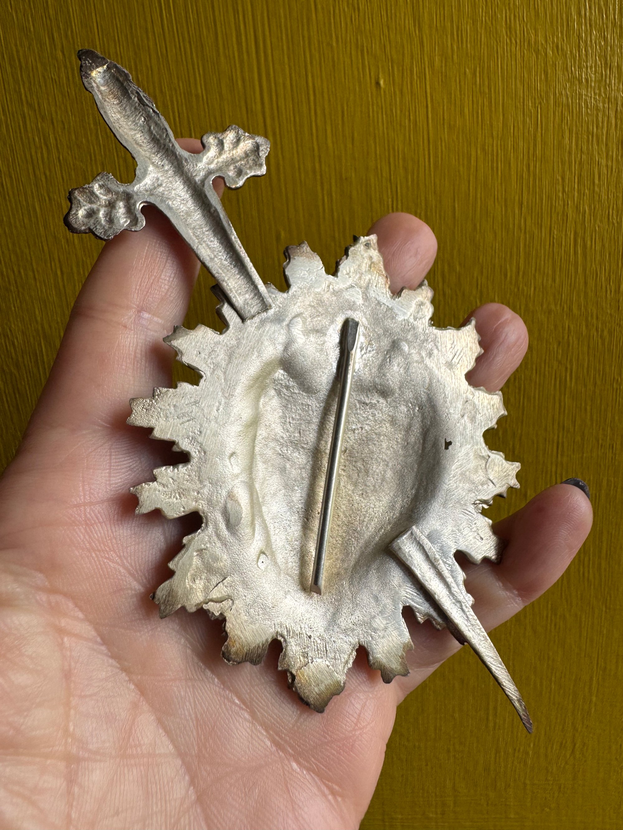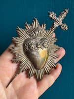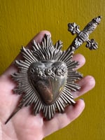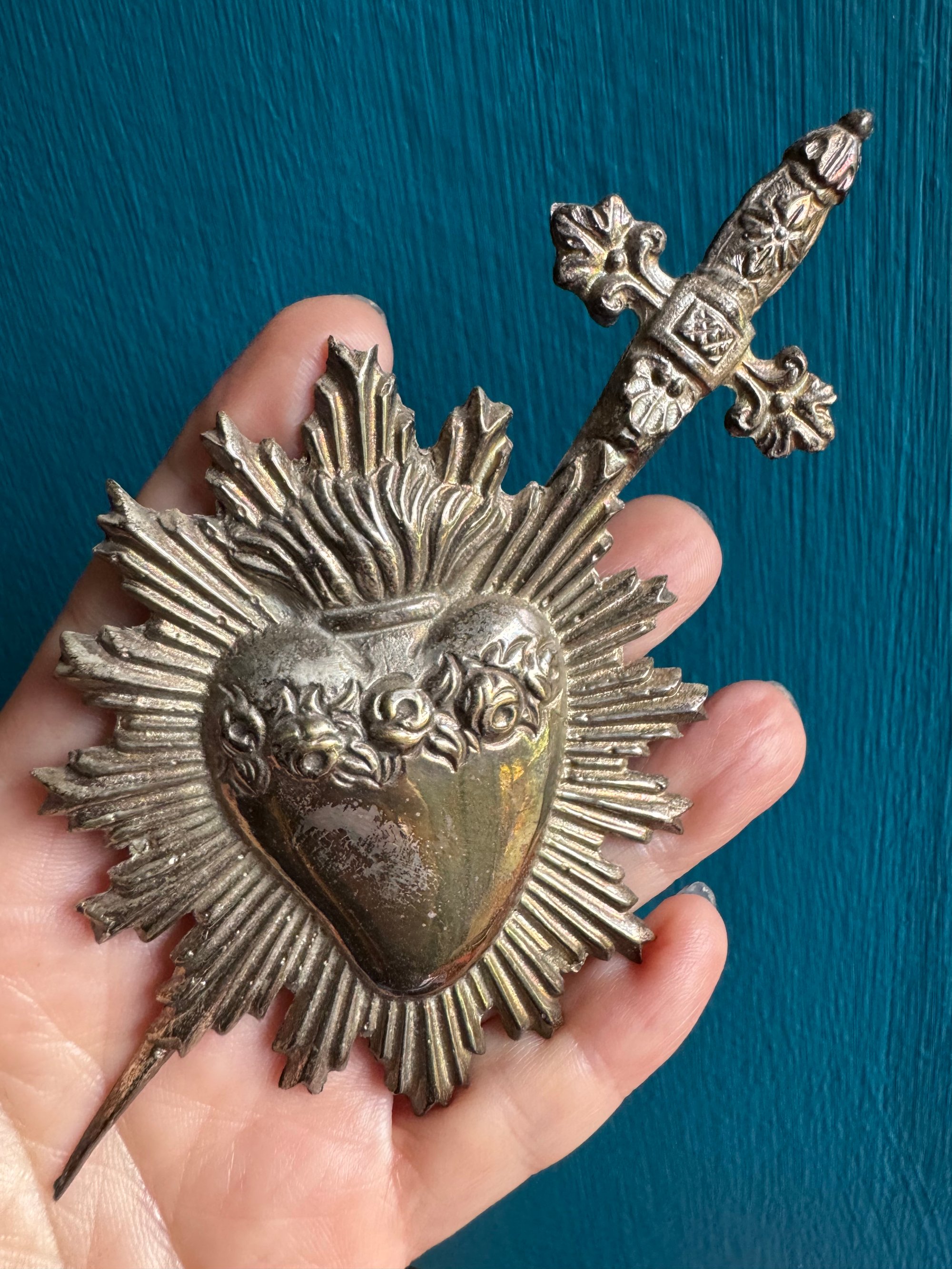 Pierced flaming heart vintage Italian silver plate ex voto. Purchased in Naples, Italy.