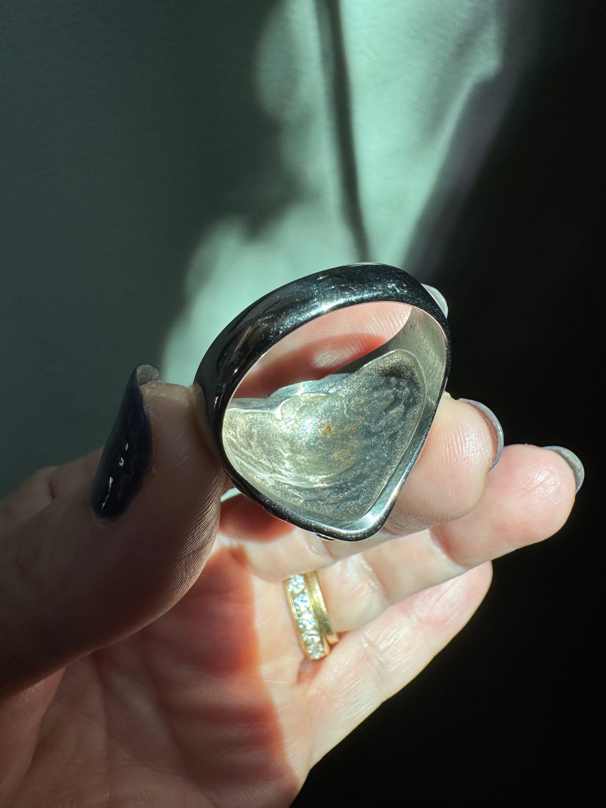 Roman League commemorative ring given to soldiers for bravery after the war of Libya against the Turks in 1910. Size 14. I am not sure what the material is but I don’t think it’s silver. Purchased from Chimera Antiqies in Rome.